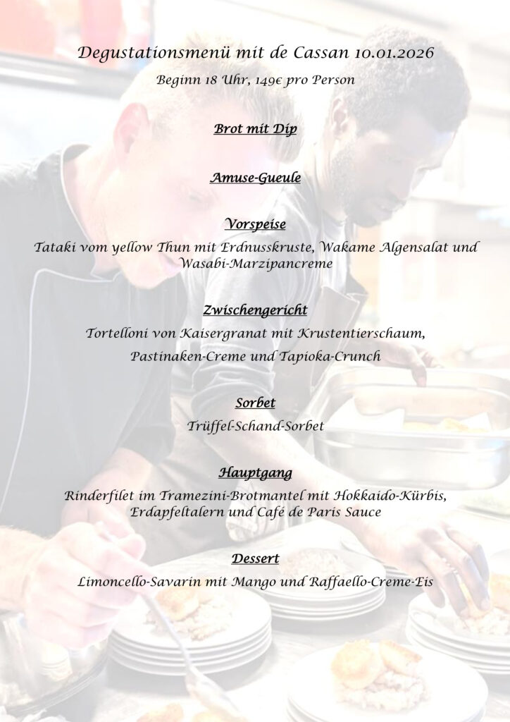 Unser Amuse Bouche Menü bietet eine exquisite kulinarische Reise in vier Gängen, bei der insgesamt zwölf kleine, kreative Köstlichkeiten serviert werden. Jedes Gericht ist sorgfältig komponiert, um den Gaumen zu erfreuen und den Appetit anzuregen. Von zarten Vorspeisen über elegante Zwischengänge, raffinierten Hauptgerichten bis hin zu köstlichen Desserts. Dieses Menü lädt dazu ein, die Vielfalt und Feinheit der Küche in kleinen, genussvollen Portionen zu entdecken. Perfekt für alle, die sich auf eine geschmackvolle Entdeckungstour begeben möchten!